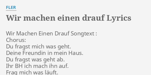 Wir Machen Einen Drauf Lyrics By Fler Wir Machen Einen Drauf